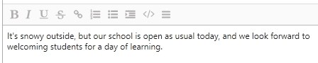 You can add images, links, attachments, or videos to your Notification, but in most cases these won't be needed. The notable exception is if you are linking to a story in your site or in the CBE corporate website for more information.