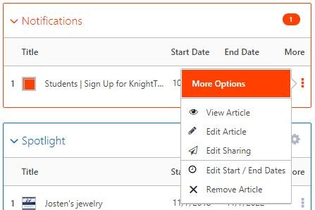 In SiteGovern, go to the Scheduler and choose Notifications. Expand the Notification section. Click on the three dots below "More". Select "Remove Article" from the choices. Press "Save". Exit SiteGovern.