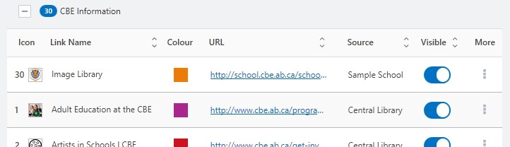 For QuickLinks in your school library, the easiest way to show or hide it is to toggle the Visible slider on or off. You can keep the QL from displaying, but it will still exist in your library in case you want to use it again in the future (this can be really helpful for something like registration information that only needs to be highlighted at certain times of year). If you make a QL invisible, it will no longer appear on your main QL page or on the home page or content pages, if it was included there.